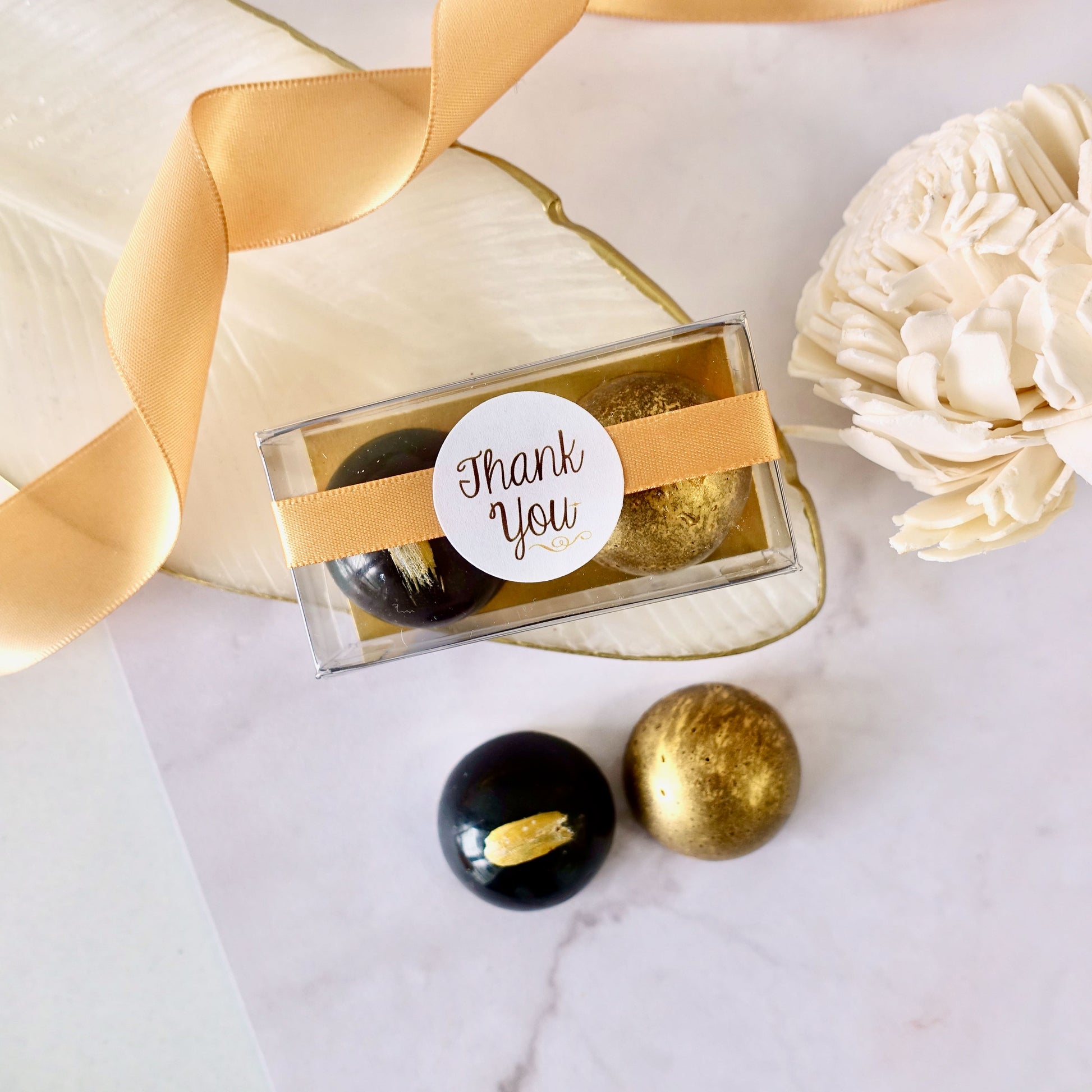 ABOUT THIS PRODUCT: Our signature award winning bonbons and caramels are sure to make any event sweeter! They are individually hand-painted and crafted with natural ingredients and bold flavours to ensure that one small bite has a big impact. Our bonbons and caramels are made with 60% Belgian dark chocolate shell and filled with a flavoured ganache or caramel.