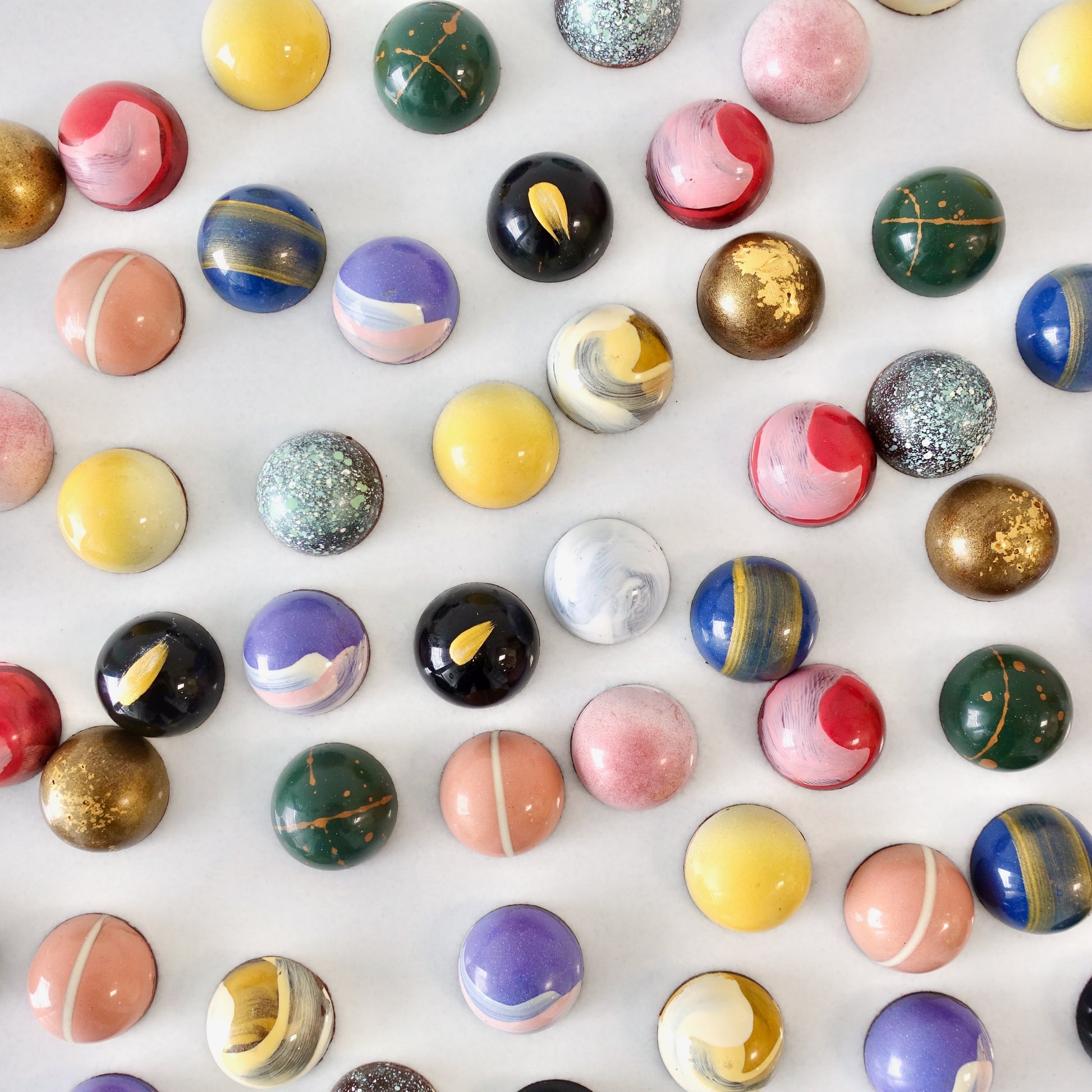 ABOUT THIS PRODUCT: Our signature award winning bonbons are sure to make any event sweeter! They are individually hand-painted and crafted with natural ingredients and bold flavours to ensure that one small bite has a big impact. Our bonbons are made with 60% Belgian dark chocolate shell and filled with a flavoured ganache.