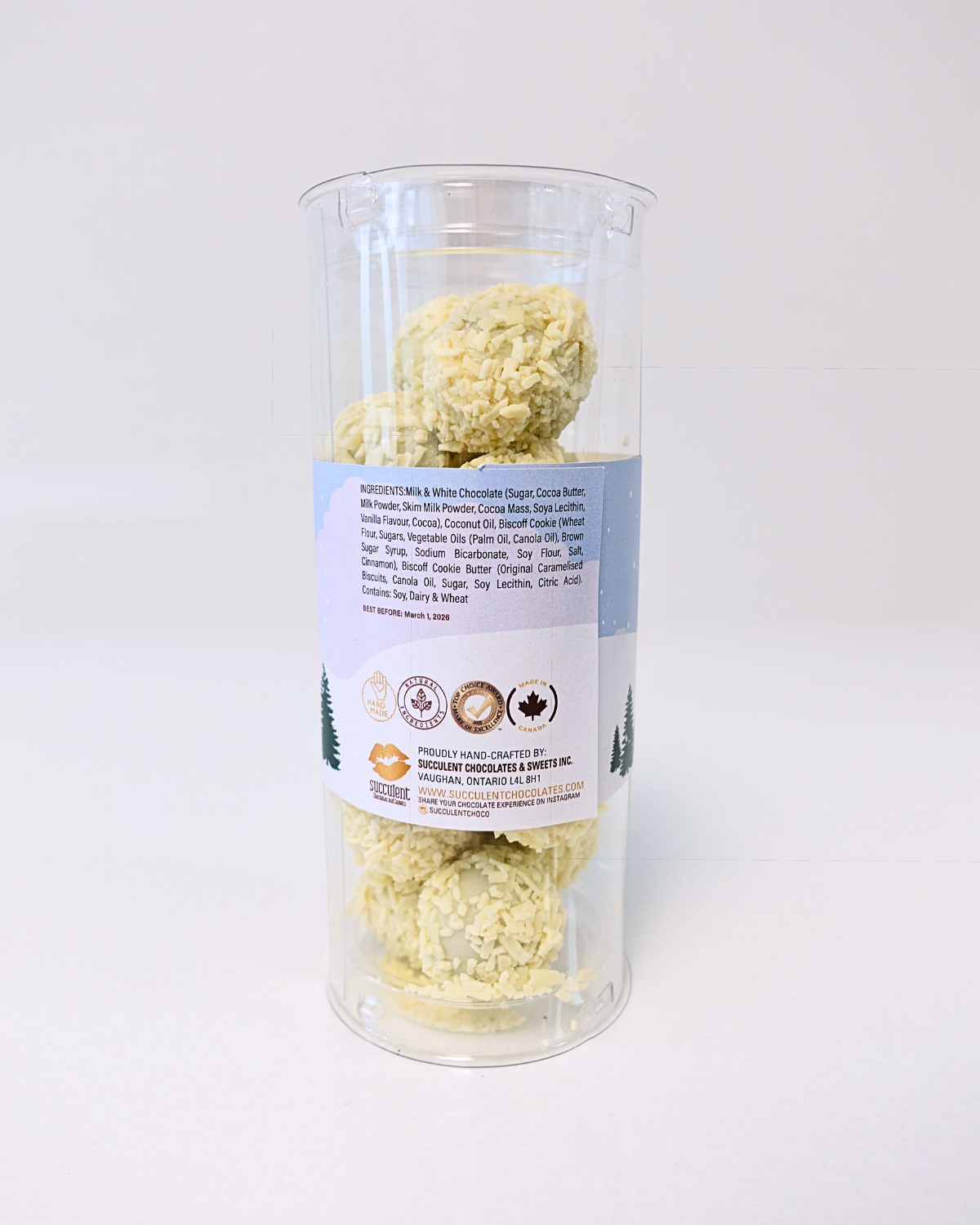 ABOUT THIS PRODUCT: Each bite features a smooth, snowy white white chocolate shell that melts away to reveals luxuriously creamy Biscoff cookie butter centre.